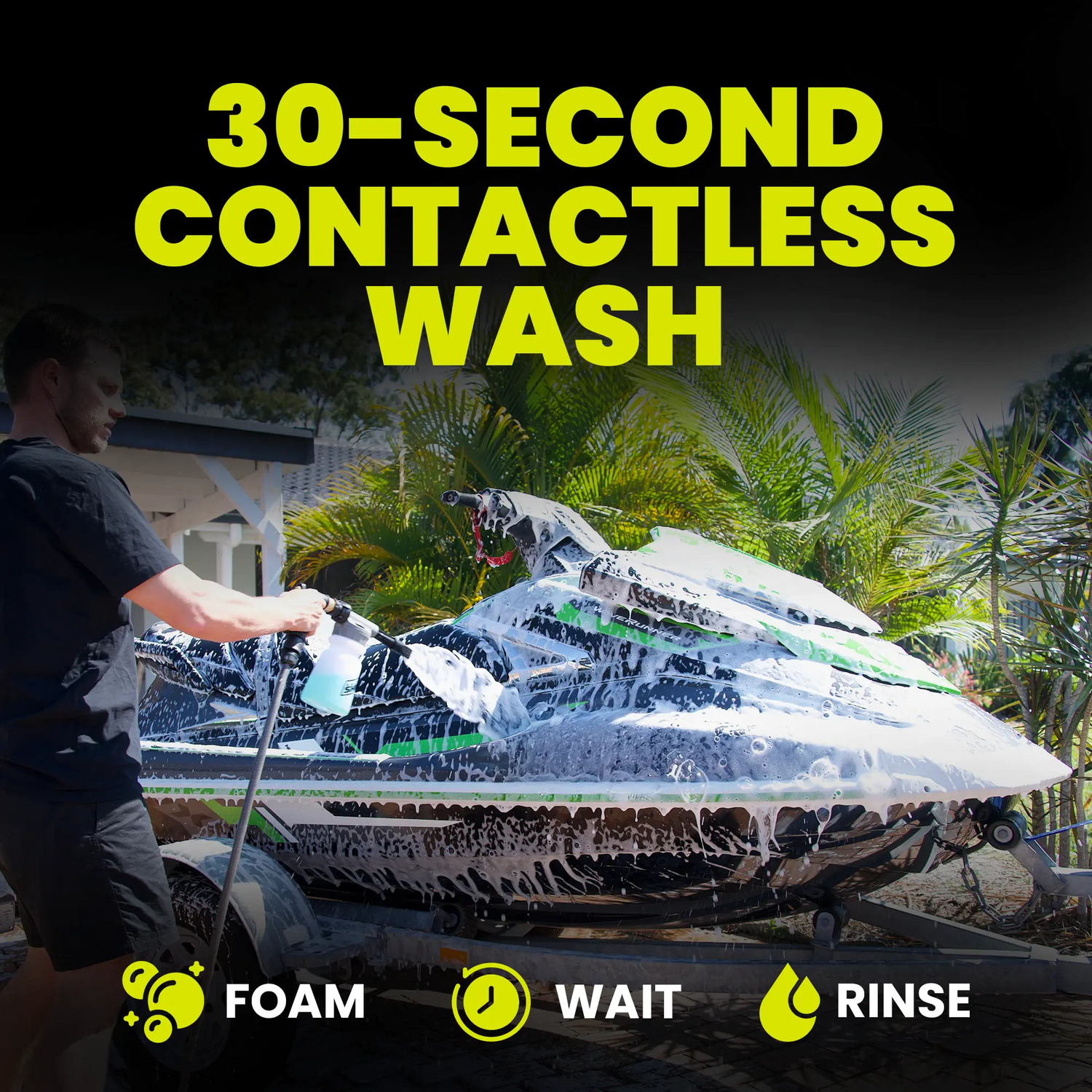 The Salt Shift 2 in 1 Snow Foam Gun attaches directly to your garden hose and automatically mixes Salt Shift formulas. Featured with an adjustable dilution ratio dial that you can control your flow rate, meaning you can wash a whole vehicle, boat or caravan with only one foam gun filling. Featured with a brass quick disconnect, easily transform the gun into a trigger activated hose nozzle and rinse away all residue.